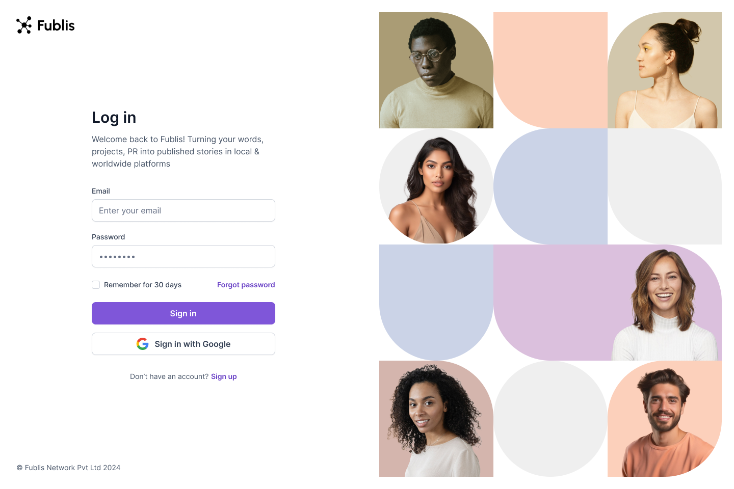 If you’re already a Fublis user, simply log in using your email address and password. Alternatively, you can opt to sign in with Google for added convenience.